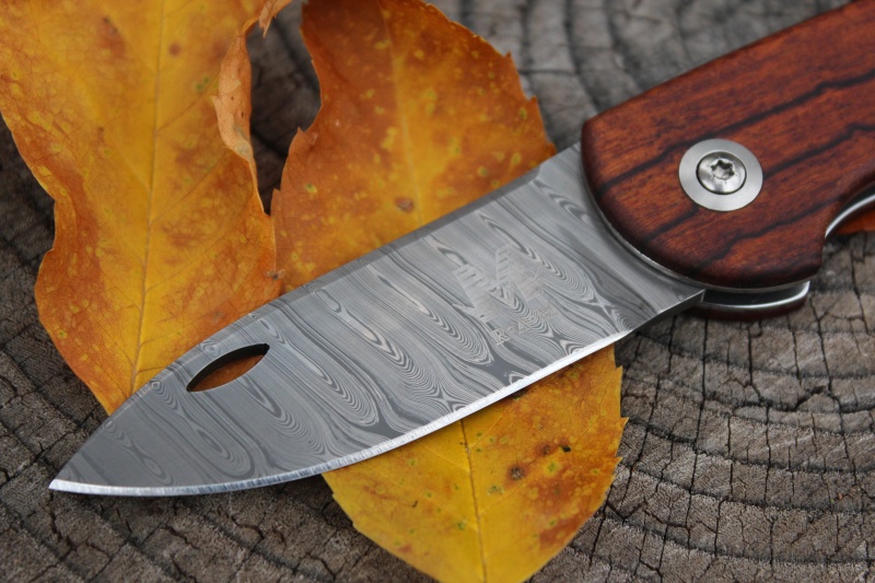 This is superb lockback, has the Swedish Damasteel blade. This is a 100 layer matenistic stainless steel, using RWL34 and hardened to 62HRC. This is the 'Twist' pattern and makes this knife one of the best folders available. Desert ironwood scales, full stainless liners.