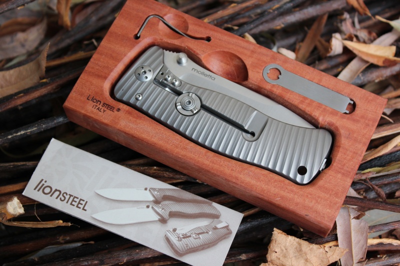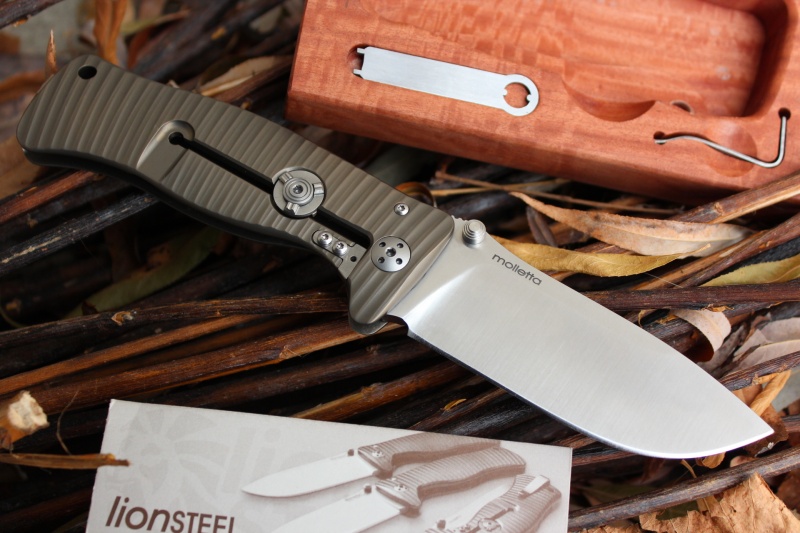 This is the Lionsteel top of the range folder, the frame is textured Titanium and the blade is a Sliepner steel. One of the best folding knives available, anywhere.