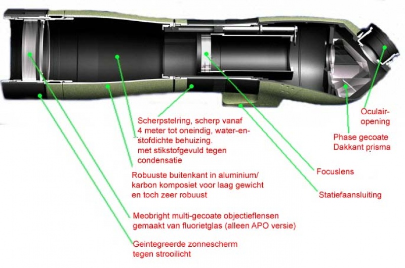 - Prism System - Precisely ground and finished Schimdt-Pechan prism system is polished to within +/- 1 second and allows hours of extended glassing without eye strain.
