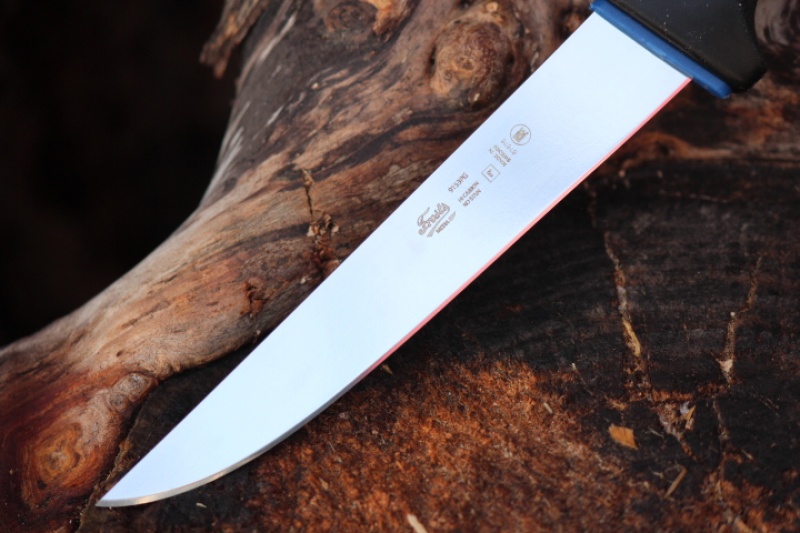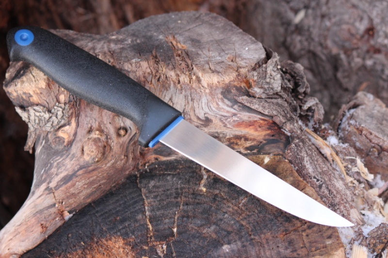 Quality made in Sweden filleting knife, great for the kitchen or camp, semi flexible Cold rolled Swedish stainless steel blade, flat ground 58HRC gives great cutting performance. Durable and tactile handle gives great grip for precision and safety