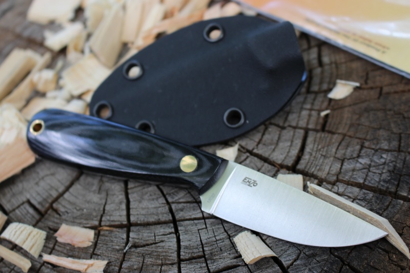 Very nice quality compact knife from Enzo. Black Micarta handle with 12C27 Swedish stainless Steel, Flat ground and hardened to 58HRC. Whats nice about these knives are they are a very useable knife, the handle allowing for a good grip and this feels a very useful, but actually highly compact, knife. Great for hikes, as a back up knife or around the campsite.