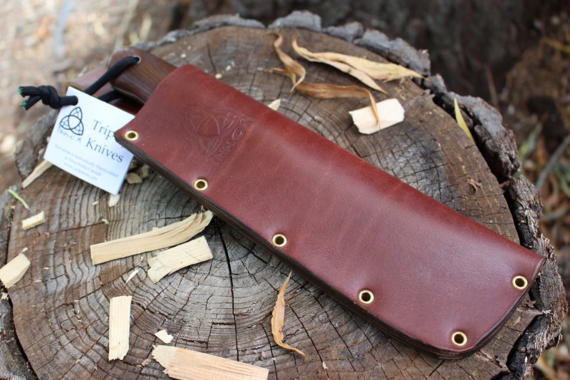 Made in Canada, the excellent new outdoor knife from Triplex of Nova Scotia, this is the Forester. Designed to be an all purpose knife the blade design allows for general work and bushcraft applications, the scandi ground L6 tool steel is a very tough and strong steel and at 59HRC will give excellent edge holding. Strong full broad tang and stainless pins make for a solid feel and the roasted (Canadian sourced) Ash handle is both attractive and durable.