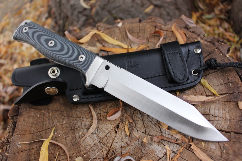 Quality larger survival knife from Cudeman of Spain. Full broad tang, micarta sclaes, steel pins and protruding tang make for a very strong knife. The steel is the MOVA to 55-57HRC and the knife comes with a quality leather sheath.
