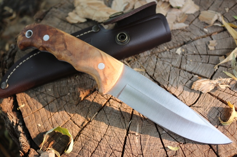 Quality outdoor knife from Cudeman of Spain. Having been very impressed with the MT bushcraft knives, I have expanded the range of Cudeman's we sell to include the Woodsman 147. This is an olivewood handled, full broad tang knife, using the MOVA stainless steel, 56-58HRC with a sabre grind. Its a great woods knife, good allaround shape and design and 3.5mm thick is strong and reliable. Stainless pins and lanyard hole, comes with quality leather sheath.