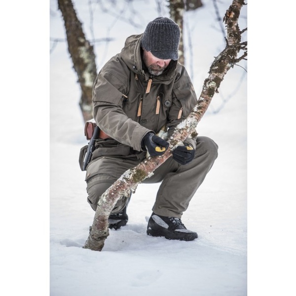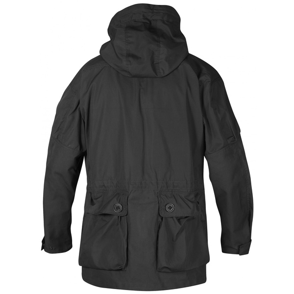 Spacious cut allows for movement, the many pockets (with NATO style taped buttons) are deep and easy to get at, excellent hood, pre shaped sleeves and many reinforcements, storm flaps and additions make for an excellent outdoor outerlayer and a great Bushcraft jacket. Heavy duty G1000 is durable and comfortable and the garment may be further water and wind proofed with the addition of Greenland wax.