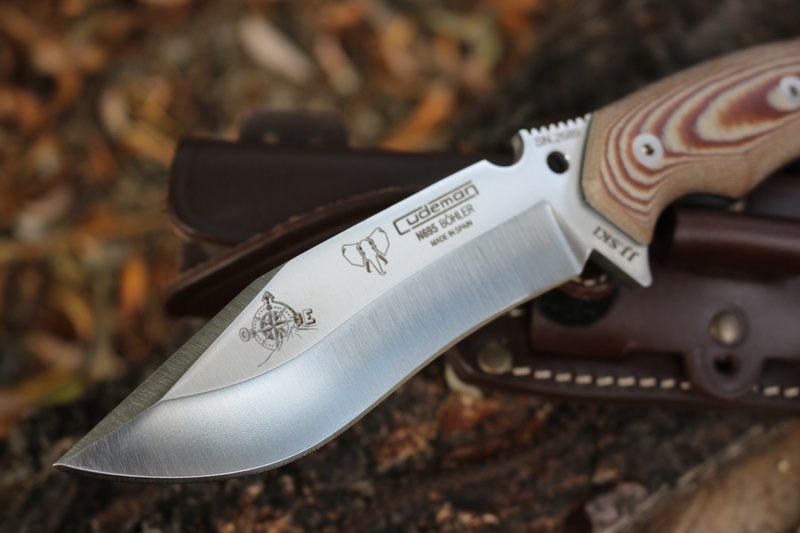 New from Cudeman of Spain this is the X Survival knife. Very well thought out and tough survival knife, full broad tang and solid micarta slabs, liner and stainless rivets. The Steel is the excellent Bohler N-695 and gives great edge holding (61HRC) and tougness. The knife is well designed with useful features and a well made sheath.