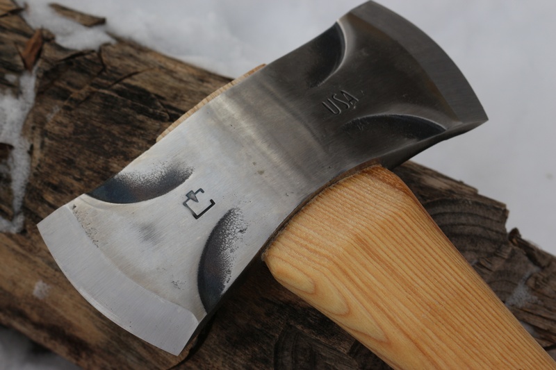 This specific design is a multifunctional and packable axe pattern that received its name from being traditionally carried in a saddle bag while on horseback. The innovative yet traditional American Pattern sports phantom bevels that greatly reduce surface friction and bite deeper than many convex bladed axes and the bevels also serve for easy removal of the axe bit after a deep cut into the wood.