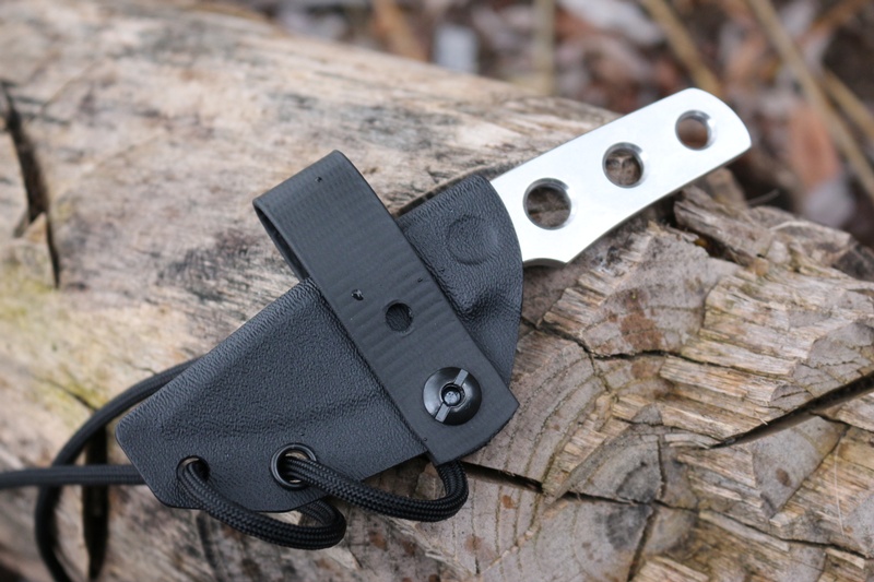 The 3 finger handle is 4.5mm thick and the knife comes with a kydex sheath.