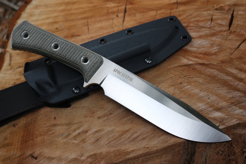 The Sabre ground 6.5in blade is 60HRC and gives tremendous bite, the balance and handling of the knife is excellent and the textured solid Micarta slabs are tough and grippy. Typically seen on smaller knives, ELMAX is an outstanding steel in terms of strength, edge holding and corrosion resistance, its one of the best choices for an outdoor knife and in the Apocalypse you have a lot of it!.