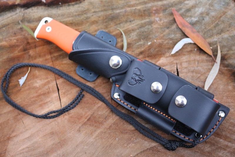 The sheath is full grain leather and can be carried in a variety of ways for ease of use.