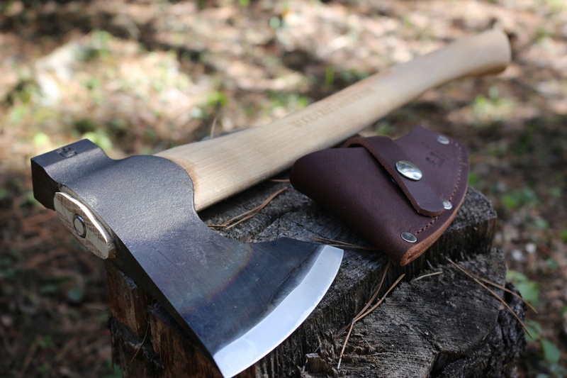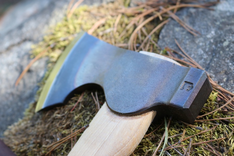 The flat ground blade (25-28 deg) is great to sharpen and cuts with a force, the 'long Beard' edge adding to the Wood bite~ the whole blade can be controlled with a fine adjustment because of the choil and this makes it a great Axe for Woodwork as well as Hunting, Camp and Bushcraft use.