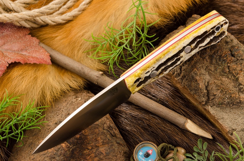 The Spear point blade is CPM 3V steel, a fine grained and tough steel, ideal for Outdoor use and at 60HRC has top level edge holding.