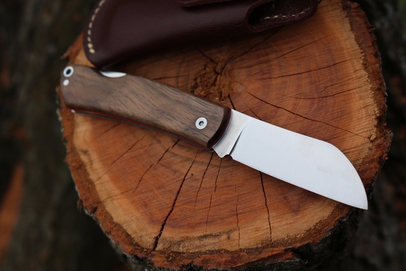 The Knife is a Walnut with Red liners and Stainless inner Liners and Pins, It locks with a robust LockBack mechanism and the blade is the very good Austrian Bohler N690 Colbalt Steel, 60HRC.