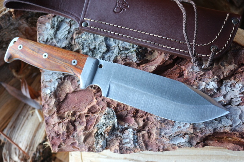 Quality larger Survival and Bushcraft knife from Cudeman of Spain. The 5mm spine, full broad tang, heavy stainless steel bolsters and stainless pins gives great strength.