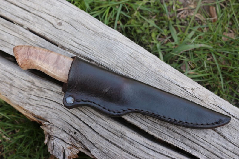The Maple Burl handle has a deep swell for comfort and traction and the Blade sits alert from the Aluminium bolster, ready for use!