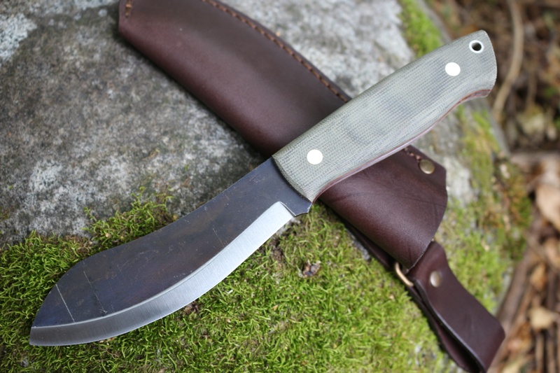 The knife utilizes the Trapper handle for comfort, full broad tang and solid pins for strength (4mm stock, spine is square) and has that superb upswept blade thats allows for so many applications in the Outdoors. Feild dressing, woodwork, food prep, fire prep and many more