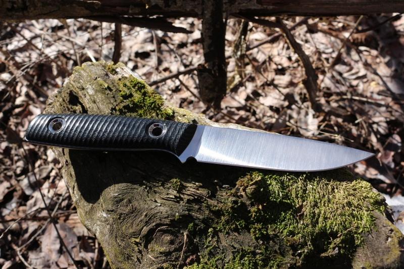 The Blade is Flat Ground with a Capped 3.4mm Spine, tapered tip and rounded off choil.