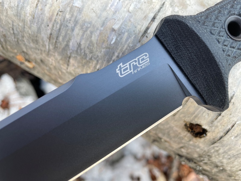 Its has a very high end DLC coating for extra protection, the full broad tang accomodates the Black micarta slabs and Solid Butt Cap with Large Hollow Pins.