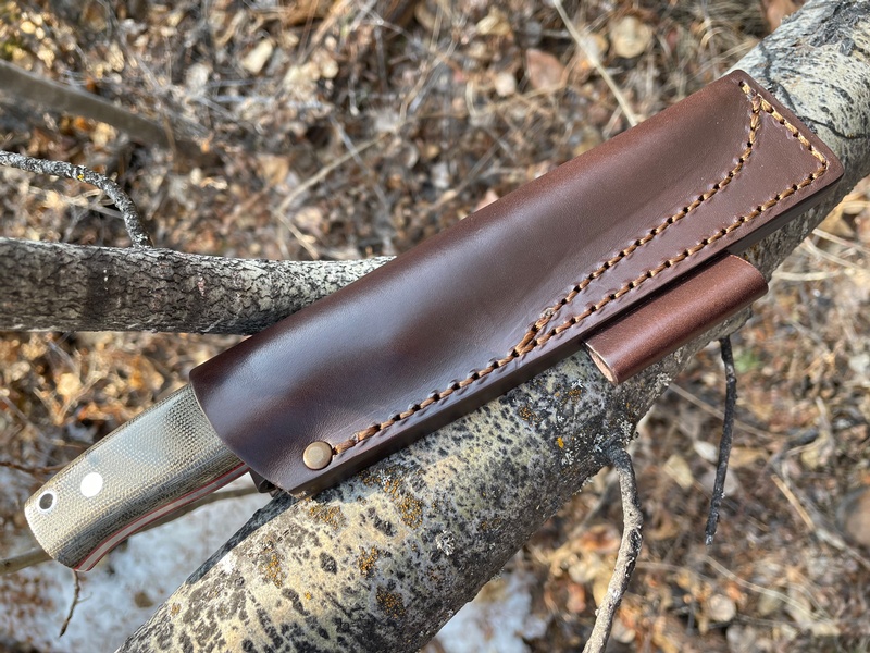 Full Broad tang with Solid Pins and Solid micarta Slabs the knife uses the 80CRV2, a Super Tough Steel, easy to sharpen.