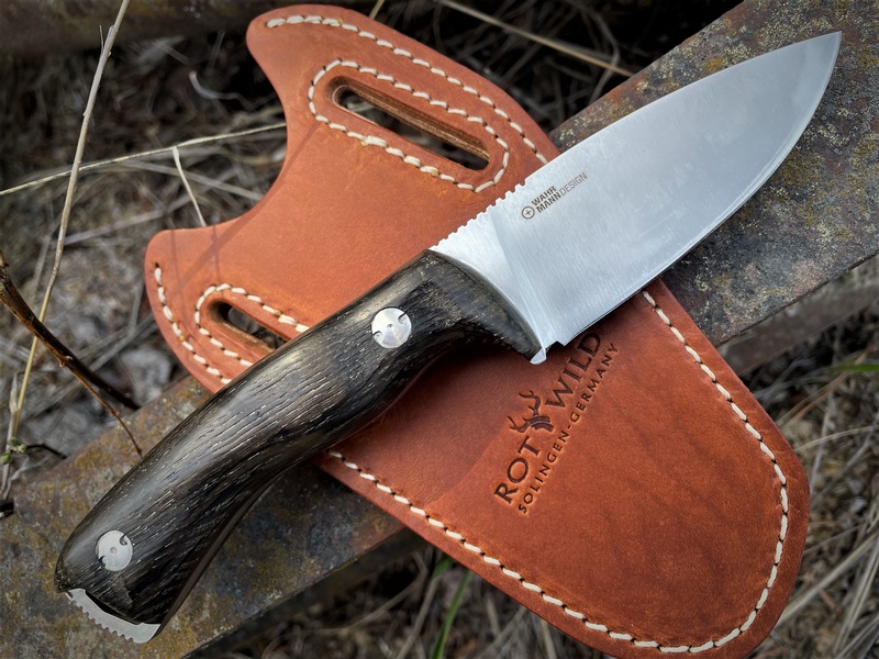 Handiness and stability in combination with the short cutting edge make it a powerful companion. The blade made of stainless N690 Böhlerstahl (60-61 Rockwell) is up to any demanding task in the hunting area or in nature, no matter in which cutting direction it goes. The full tang MILAN fits perfectly in the hand and its unique ergonomic grip allows you to work for long periods of time.