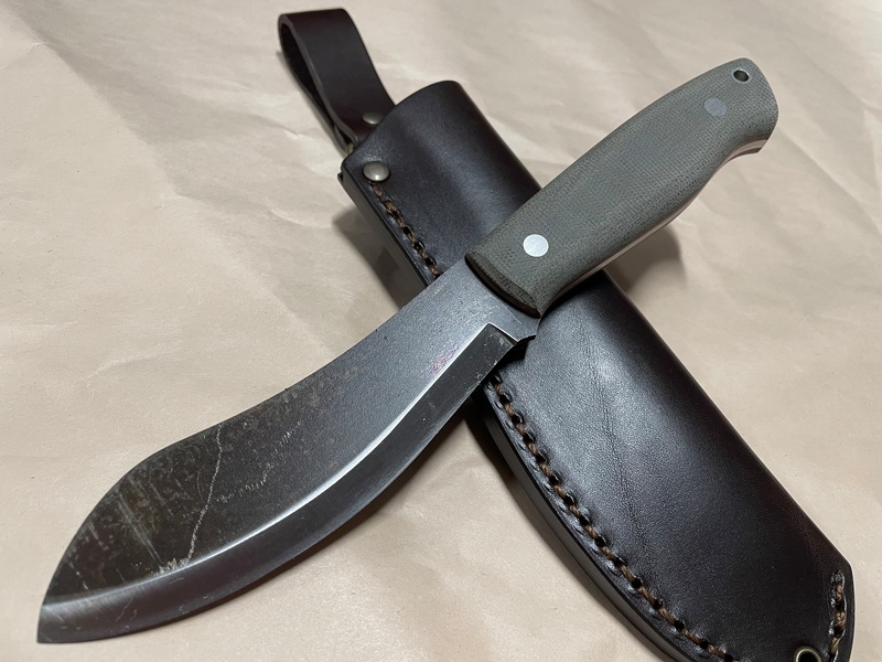 The knife utilizes the Trapper handle for comfort, full broad tang and solid pins for strength (4mm stock, spine is square) and has that superb upswept blade thats allows for so many applications in the Outdoors. Field dressing, woodwork, food prep, fire prep and many more