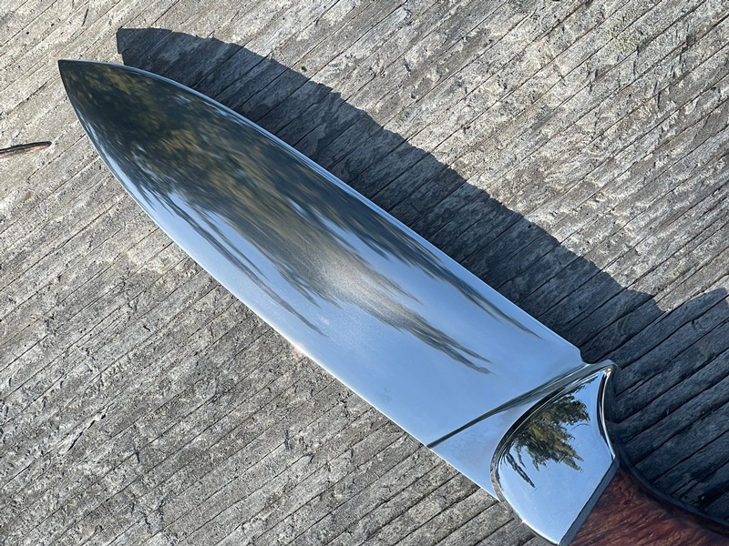 The 62HRC Magnacut has a high polish, not something normally seen with this steel, as the sheer time and labour it takes to get such a finish means most makers will not attempt it! The combination of Magnacut, Convex Grind and High polish make these knives some of the best slicing knives out there~