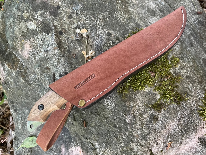 It features a comfortable walnut handle with finger groves that improves traction and comfort. The Leather sheath as always from BPS is good quality and also includes a dangler which gives you more carry options. A great value knife that will serve you well on your belt or in your pack!