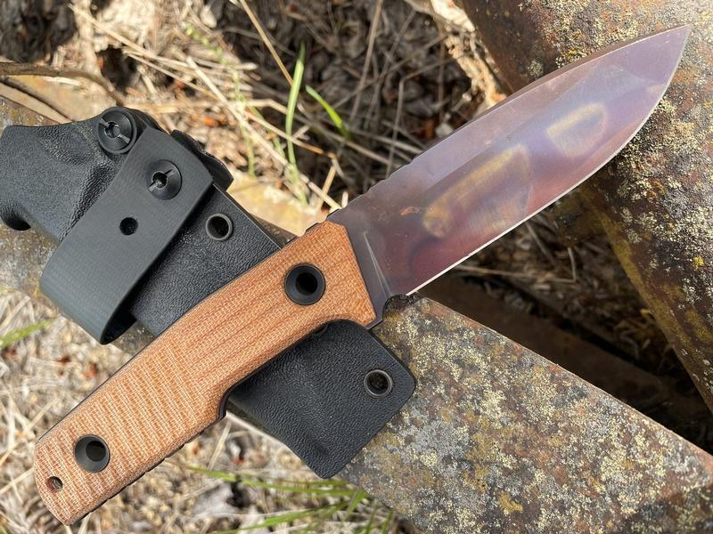 TRC Knives Urban Tactical. Natural Canvas Micarta Apocalypse Elmax Blade