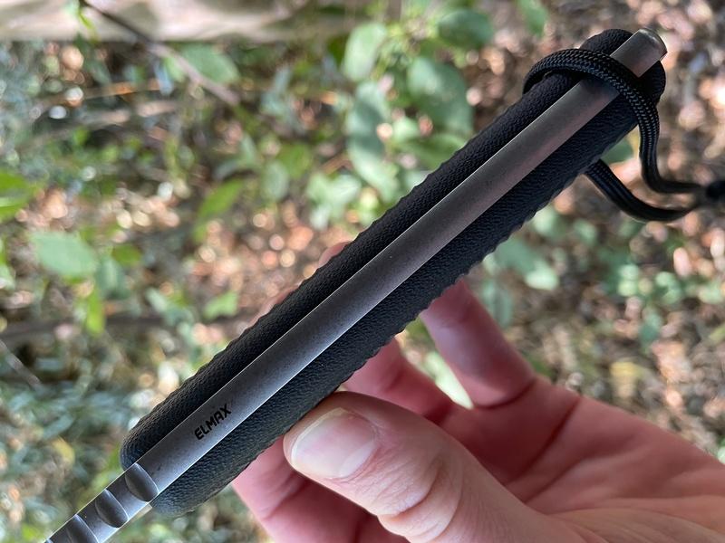 The Sabre ground 6.5in blade is 60HRC and gives tremendous bite, the balance and handling of the knife is excellent and the textured solid Micarta slabs are tough and grippy. Typically seen on smaller knives, ELMAX is an outstanding steel in terms of strength, edge holding and corrosion resistance, its one of the best choices for an outdoor knife and in the Apocalypse you have a lot of it!.