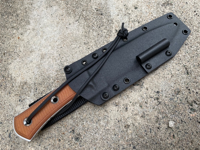 The Sabre ground 6.5in blade is 60HRC and gives tremendous bite, the balance and handling of the knife is excellent and the textured solid Micarta slabs are tough and grippy. Typically seen on smaller knives, V4E is a chromium-molybdenum-vanadium alloyed Tool Steel, using the 3 Gen CPM process. It produces a quite superb Steel, know for its extreme toughness, edge holding and torsional Strength