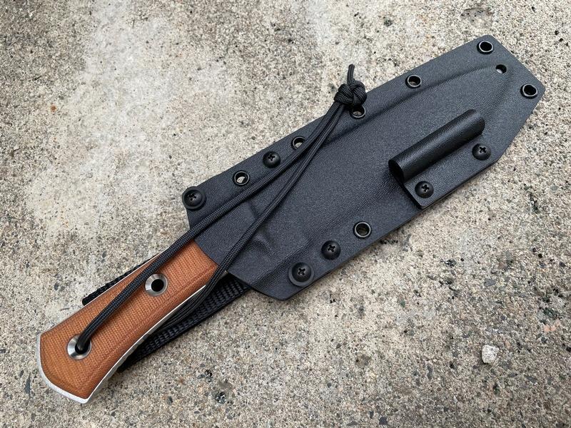 The Sabre ground 6.5in blade is 60HRC and gives tremendous bite, the balance and handling of the knife is excellent and the textured solid Micarta slabs are tough and grippy. Typically seen on smaller knives, V4E is a chromium-molybdenum-vanadium alloyed Tool Steel, using the 3 Gen CPM process. It produces a quite superb Steel, know for its extreme toughness, edge holding and torsional Strength
