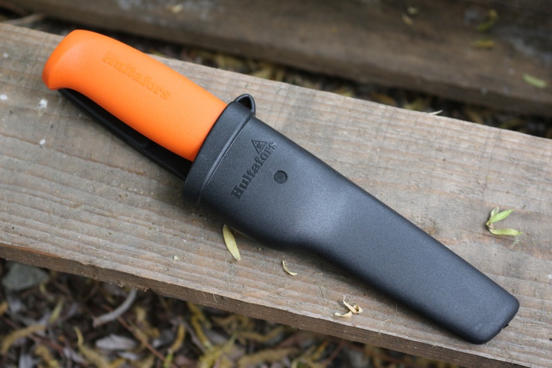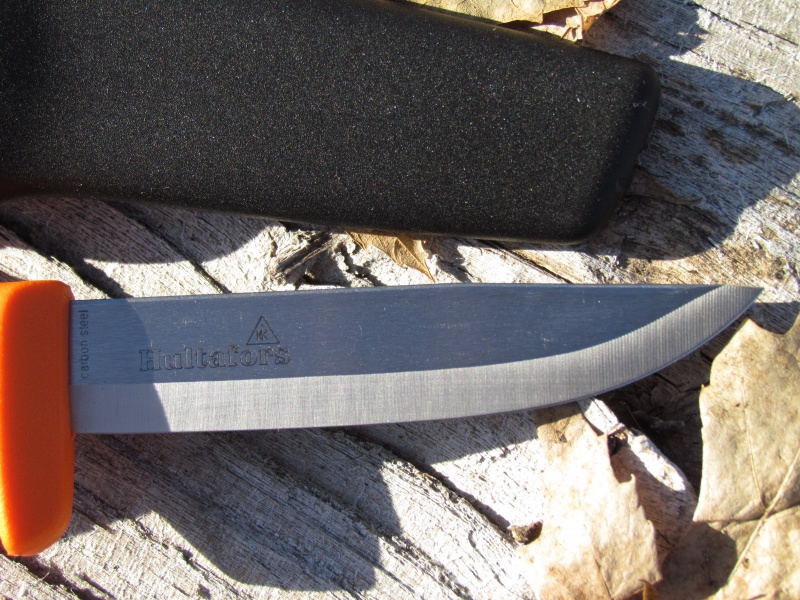 A superb knife from the Swedish firm of Hultafors. Really tremendous value, a high carbon steel Japanese blade, single bevel and 3/4 tang, 2mm thick.Would do service as a general use knife, bushcraft, hunting or as part of a survival kit. Bright orange and difficult to lose, polypropylene handle, and extra strong PP sheath.