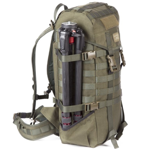 The floating lid and side compression straps offer a wide range of adjustability to the capacity of the pack. Strap it down tight or loosen it up depending on the carried load. The compression straps allow for further gear to be attached on the outside of the pack if necessary. External side pouches on the bottom can be used to secure tools, tripods etc. strapped to the sides of the pack.
