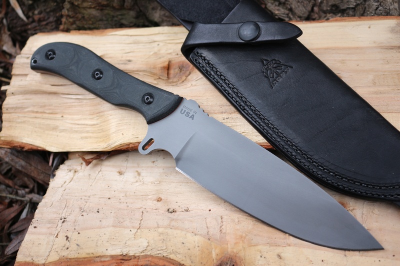 A high quality USA made bushcraft and survival knife, designed by Anton Du Plessis a well known survival and outdoor expert in South Africa. The blade is designed to be versitile and strong, its full broad tang and uses the TOPS 1095 high carbon steel. Grips are in black Linen micarta with red liner.