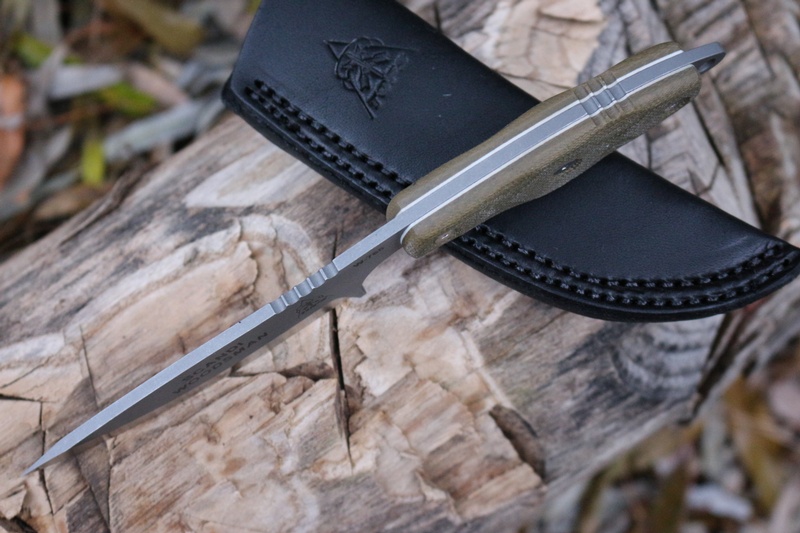 Nicely designed Green Canvas Micarta handle, full broad tang, with a deep cut to afford great control of the 3.5in blade.