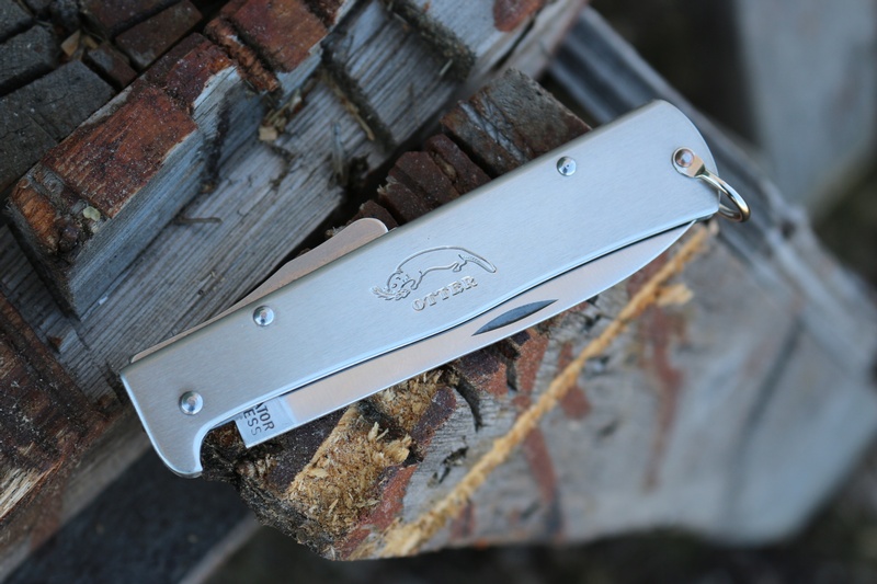 The Knife has a Brushed finish Steel body, the stamped 'Otter' as well as the clip and loop.