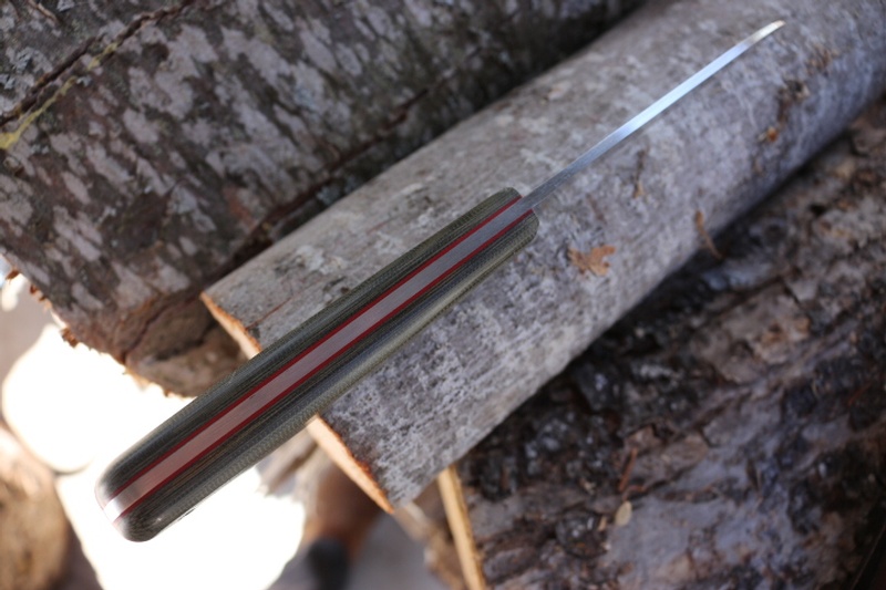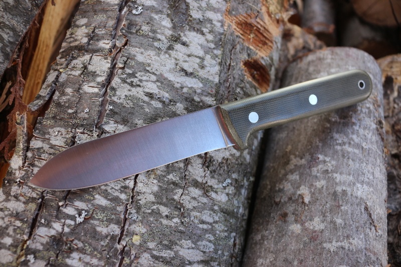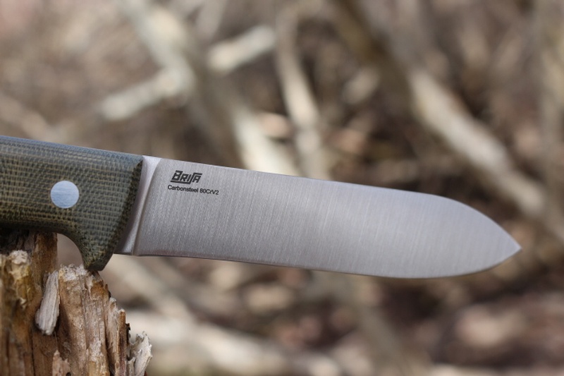 80CrV2 Steel, Flat ground makes for a tough, easy to maintain, Bushcraft and Camp Knife. The slabs are a stabilized Green Micarta.