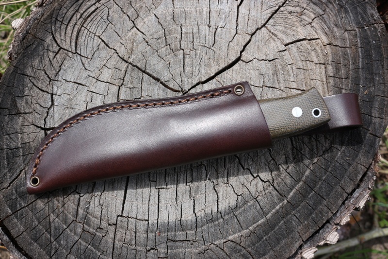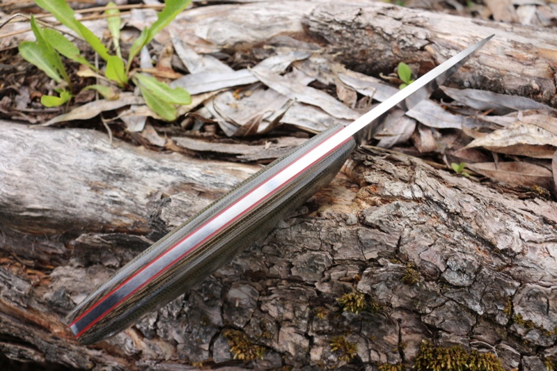 Full broad Tang construction with Solid Pins and with a variation of the excellent Trapper Handle, the knife has superb Balance and Grip.