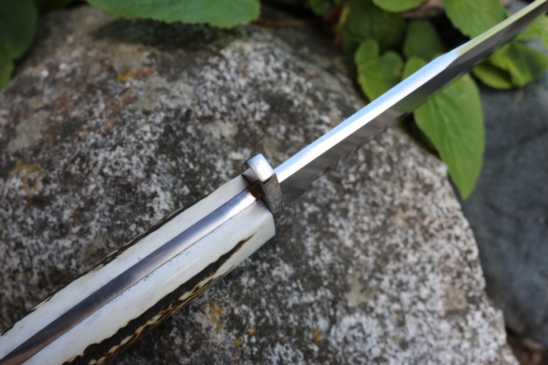 The Stag handles give plenty of width in the hand for a full grip and the knife has a solid and hefty feel.