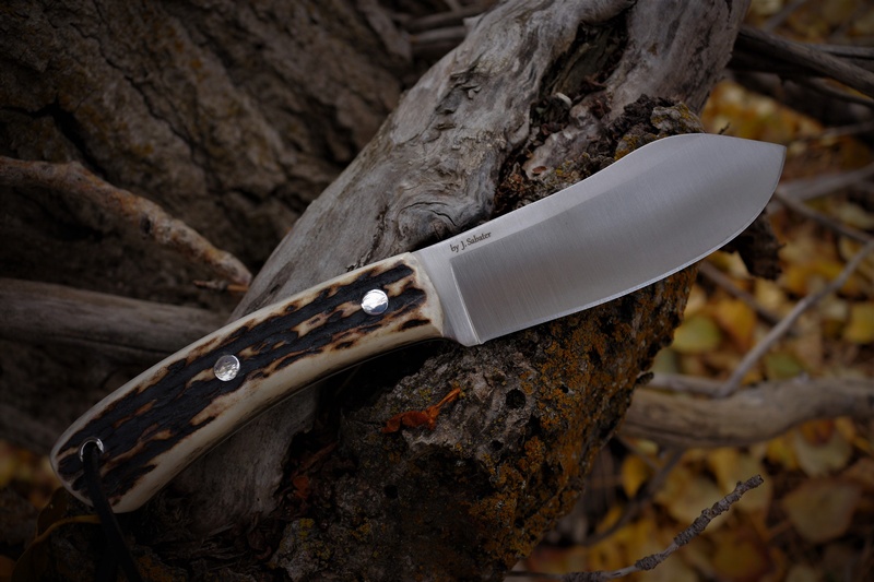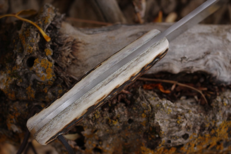 A very classic design is the Nessmuk, the knife is geared towards being a Bushcraft and Survival Knife and has a full tang blade. The Blade is flat ground and made of the Swedish 14C28 Stainless Steel, a tough Sandvik Steel that has excellent corrosion resistance, as well as edge toughness.