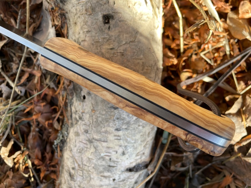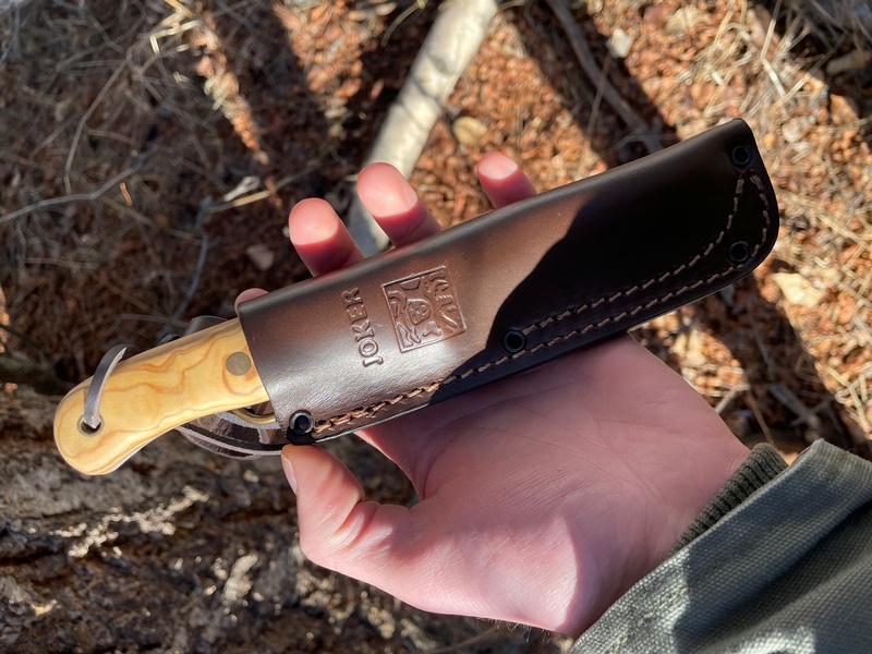 The Joker Campero is an excellent bushcraft and/or hunting blade, full broad tang, steel pins, and a quality leather sheath make this the perfect woods companion. It is very comfortable in the hand and a pleasure to use. The blade profile is a very nicely designed clip point.