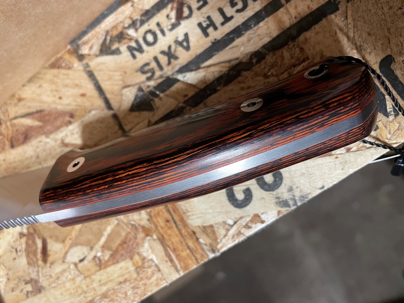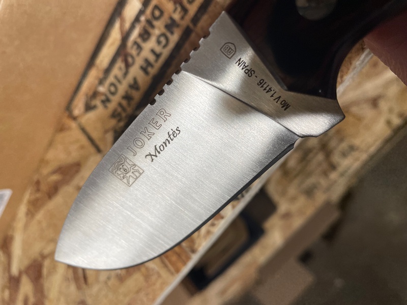 Another Great and Practical knife from Joker! The Montes!! It has a very broad blade, flat ground, full broad tand and made of the MoV 1.4116 stainless steel. The handle is a laminated wood with a nice sculpted shape.