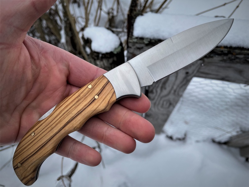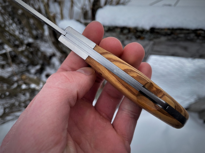 A very sturdy lockback perfect as a hunting folder! The blade sports a nice olivewood handle, Made of a Molybdenum Vanadium 1.4116 stainless, it is a very tough steel and easy to sharpen, an excellent bushcraft steel.