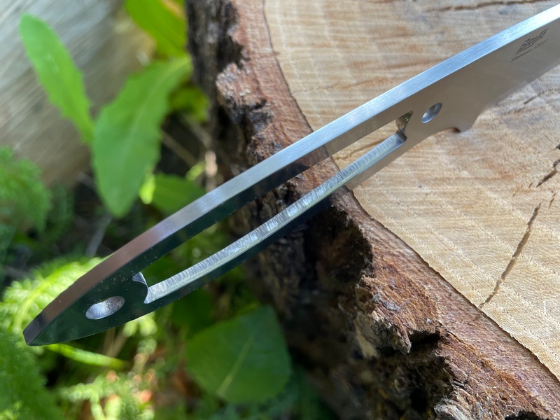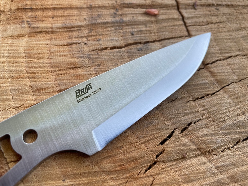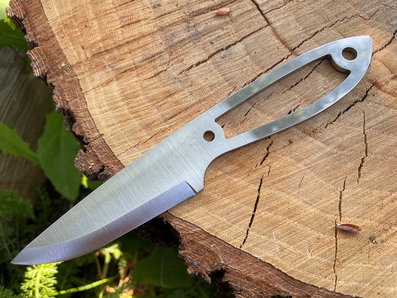 An Brisa Bobtail blade blank just waiting for the slabs!, Scandi ground in the Swedish Sandvik 12C27 Steel.
