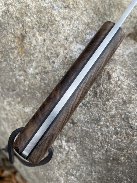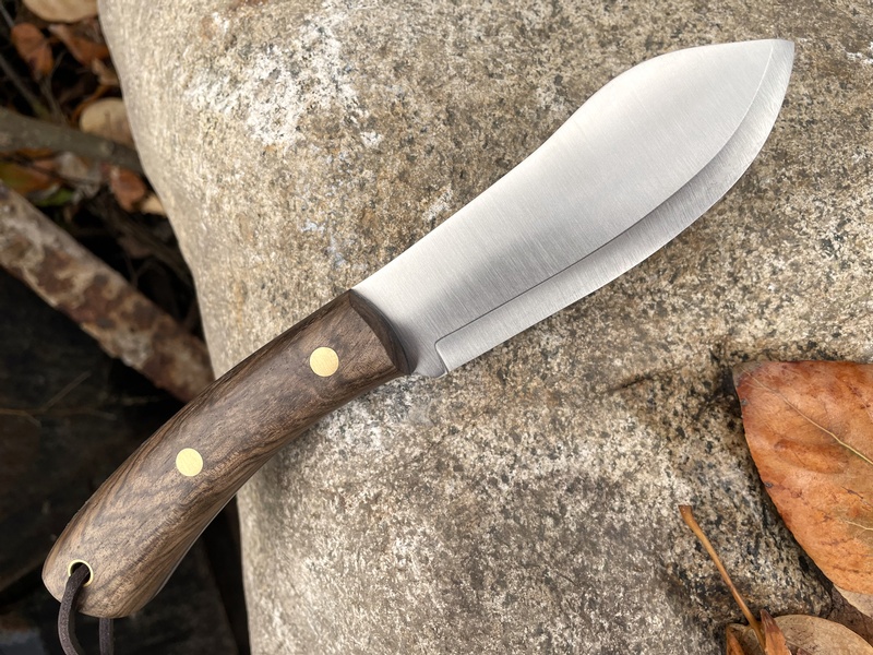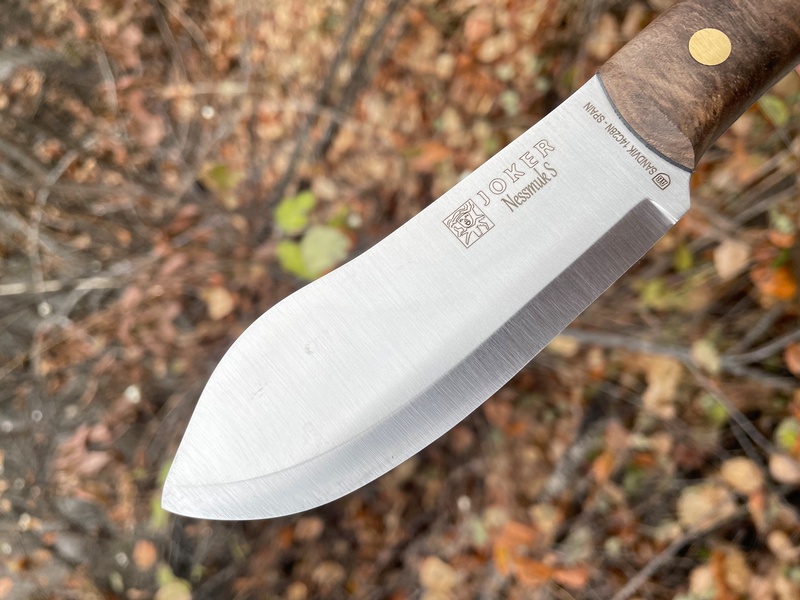 A very classic design is the Nessmuk, the knife is geared towards being a Bushcraft and Survival Knife and has a full tang blade. The Blade is Scandi ground and made of the Swedish 14C28 Stainless Steel, a tough Sandvik Steel that has excellent corrosion resistance, as well as edge toughness.