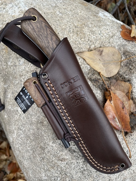 The knife is accompanied by a quality brown leather sheath. In addition, the sheath allows both a high and low vertical height as desired or according to the circumstances in which you are going to work in the forest.