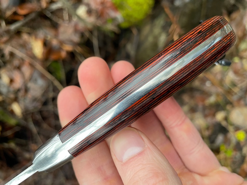 Made of the Molybdenum Vanadium 1.4116 stainless steel, it is a very tough steel and easy to sharpen, an excellent bushcraft steel.