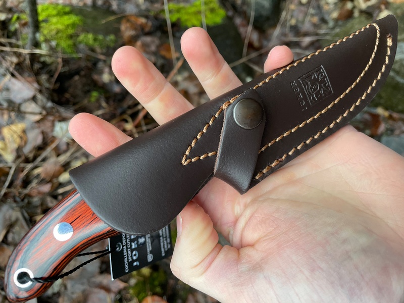 A super functional and comfortable blade is the Joker Cebra II ! With a satin finish and Redwood laminated handle this is a sleek and well built piece by Joker! It fits very nicely in the hand and would make for a very good hunting/skinning or General Purpose Outdoor knife.