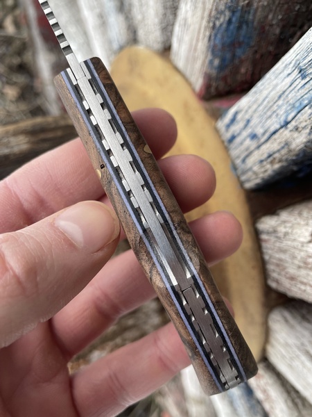 The slabs are Walnut and the knife has full stainless inner liners with notched decoration. The lock is the tried and tested Lockback action and the tough blade is made from the Molybdenum Vanadium 1.4116 stainless, the steel is very strong and durable.
