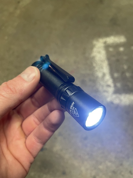 A very compact and powerful single cell flashlight! It uses only one AA battery and puts out an impressive 300 lumens! It does include a small clip and the colour is a matte black. This flashligh is very light and would make an excellent choice as a EDC option and/or a backup light for your pack!